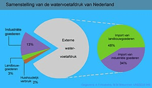 Onze Nederlandse voetafdruk voor waterverbruik bedraagt niet minder dan 2.300.000 liter water per inwoner per jaar. Zo’n 90% daarvan wordt (als producten en diensten) geïmporteerd uit landen met waterschaarste zoals Spanje, Sudan, China en India. De groei van de wereldbevolking, vaak geconcentreerd in gebieden waar de waterschaarste al enorme proporties heeft aangenomen, zorgt voor een toenemende schaarste aan veilig, drinkbaar, water.